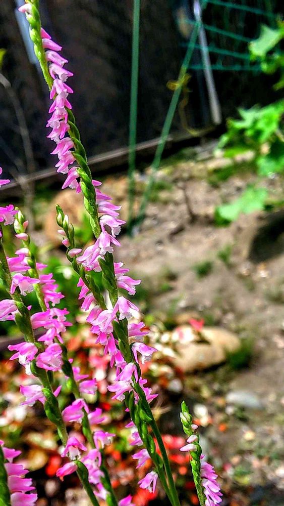 今年は競技場の中の芝生に綱を引いている場所が何箇所かあって近づいて見るとたくさんのネジバナが咲いていて