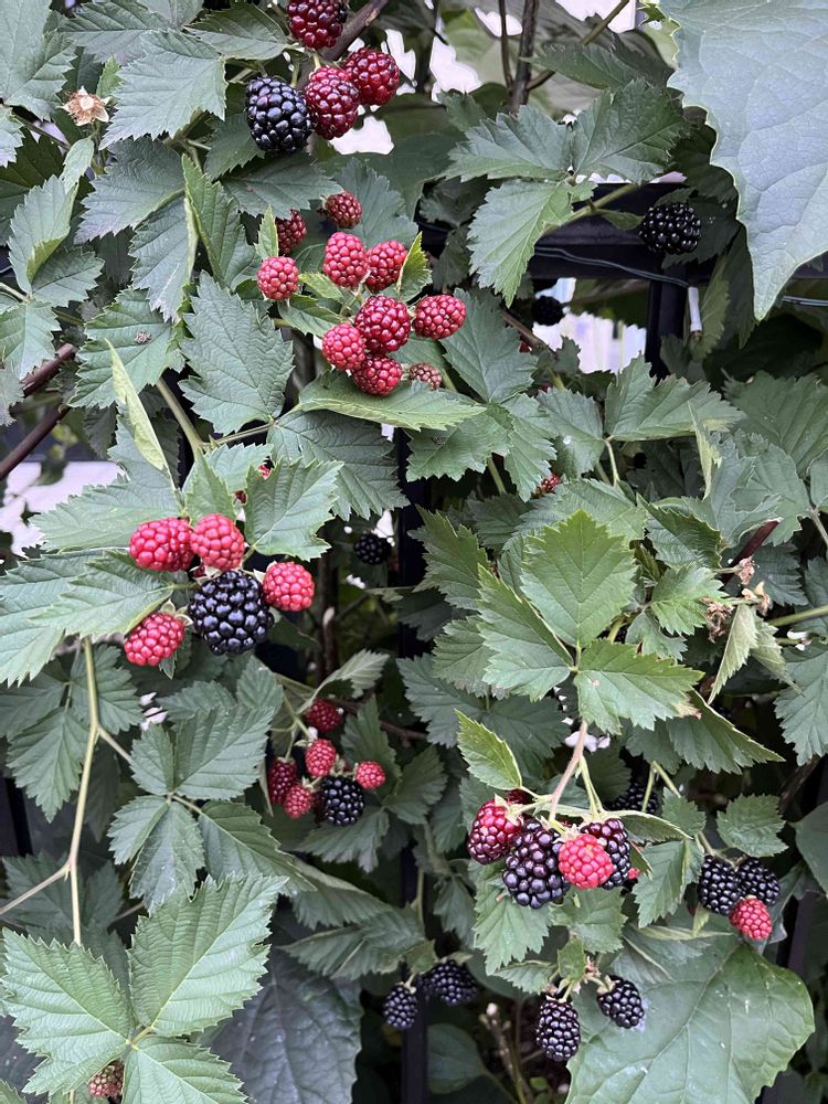 いとこの子供とお散歩中に撮影しました😆👍✨ アガパンサスのお花とブラックベリーの実です🤤🌸🪻🫐🍓 ブラックベリーが美味しそうに熟し始めてました😆👍🤤🍓🍓🫐🫐
