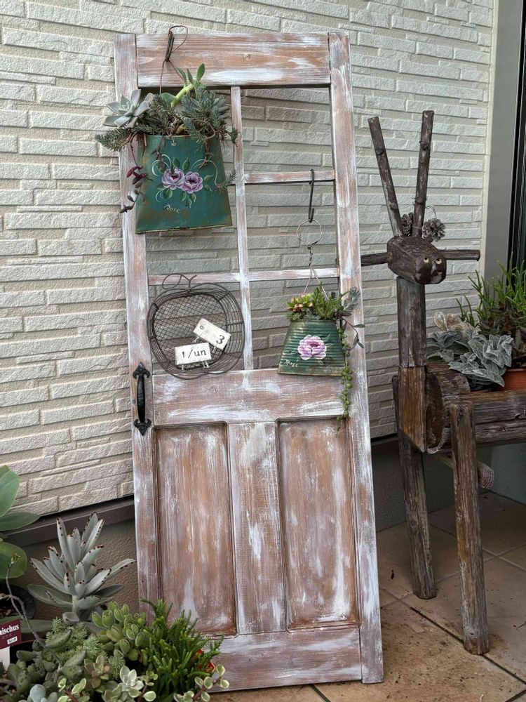 テラス,手作りDIYドア,多肉寄せ植えの投稿画像