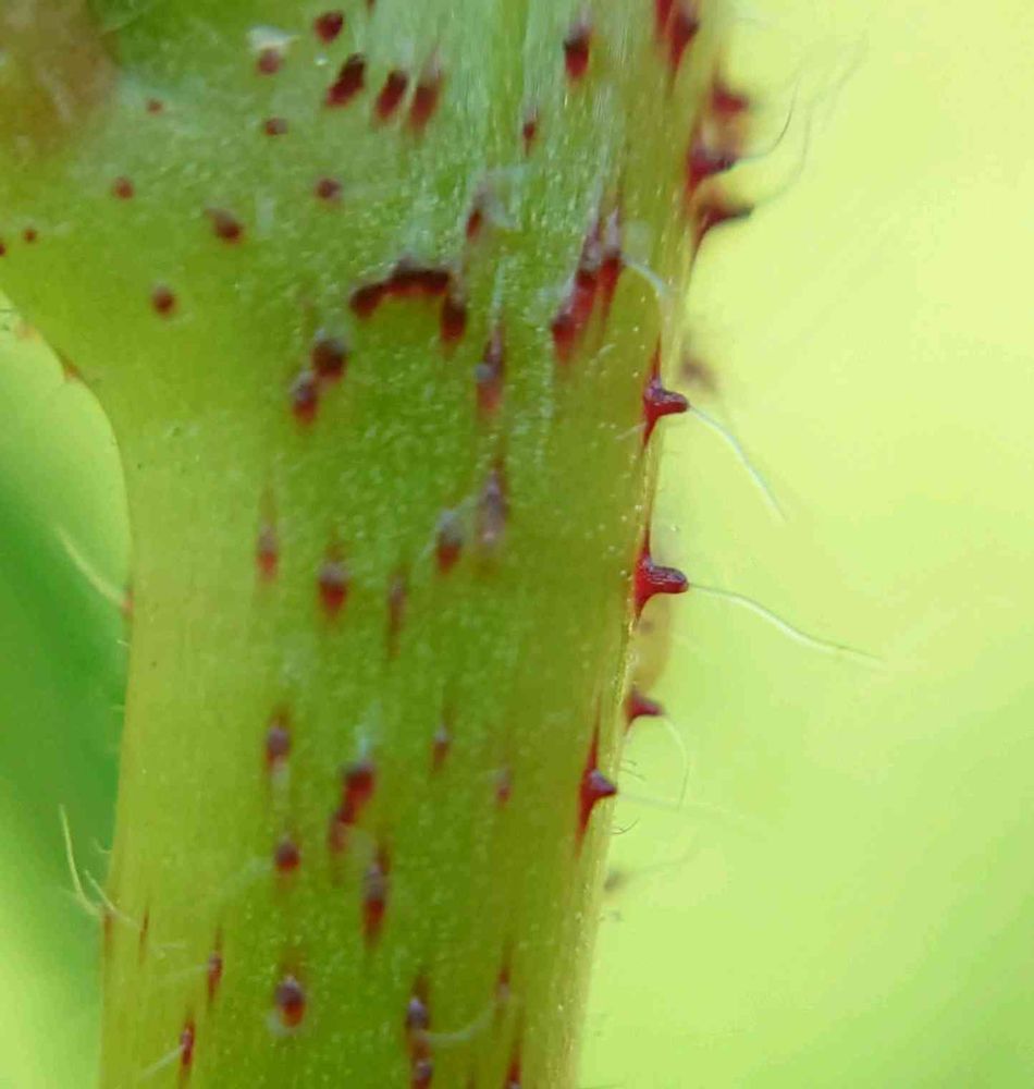 茎には基部が赤く膨らんだ剛毛が一面に生え、毛が落ちた後も赤く残る
