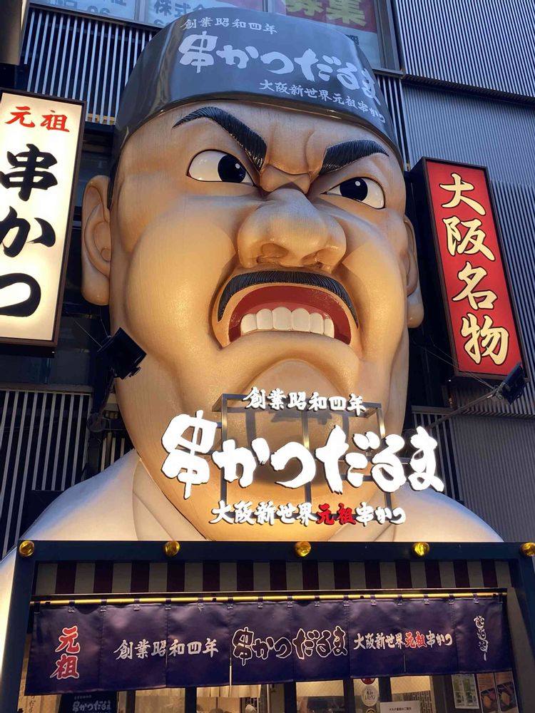 [@id:1543652] さんお疲れ様です。道頓堀の串カツ「だるま」の看板です。他にもたくさんユニークな看板があります。またpicしますね。👏👏🙆♀️🙆♀️