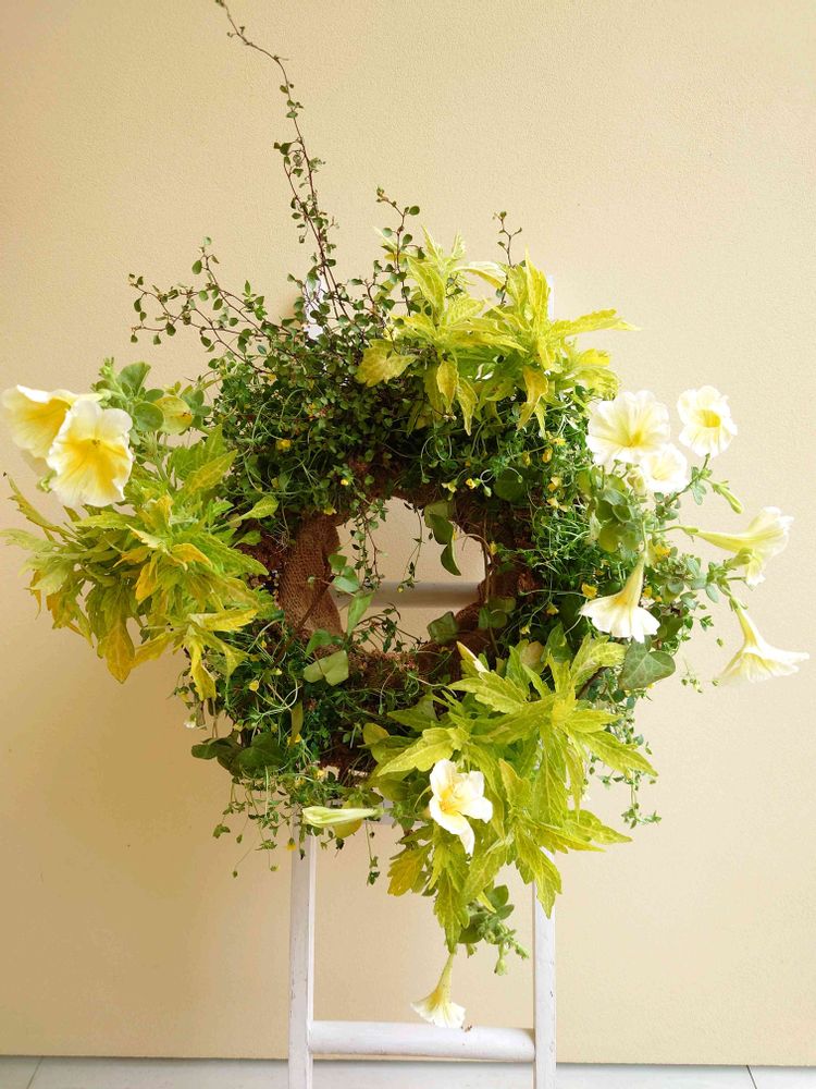 春のビオラにお別れを告げ、玄関の自作リース型プランターをモデルチェンジ🌻