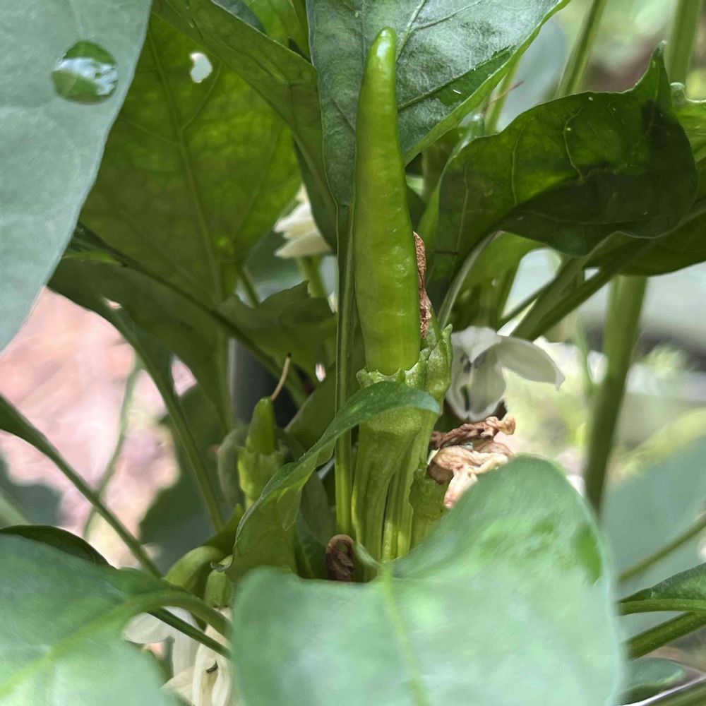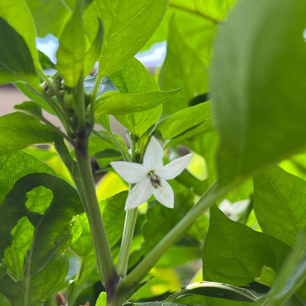 庭で育ててる唐辛子のお花と🌸 実です🌶️ 順調に育ってます😆👍🌶️🌶️