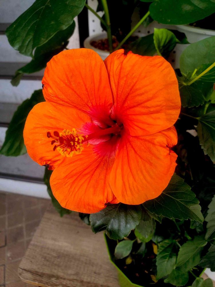 今朝、我が家🧡🌺オレンジのハイビスカスが5輪開花でした。