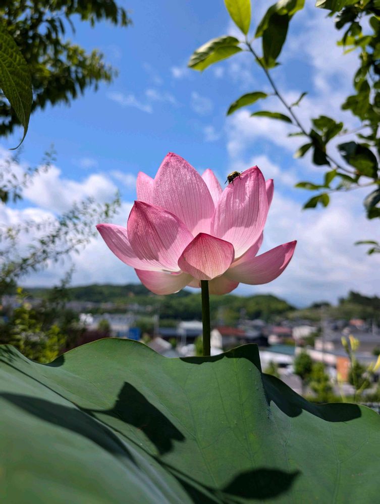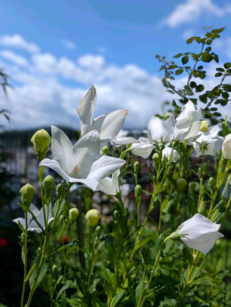 青空に白キキョウとハス🪷が映えていますね✨💕💕