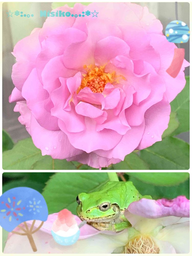 大事な🌹の上に 🐸が