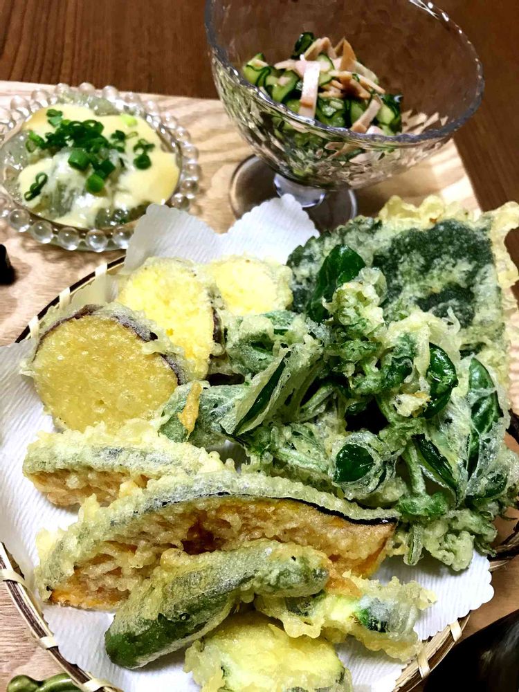 採って揚げたてあつあつを塩つけて食べた時の幸せ感が最高なんです☺️家庭菜園の高付加価値です😉✨