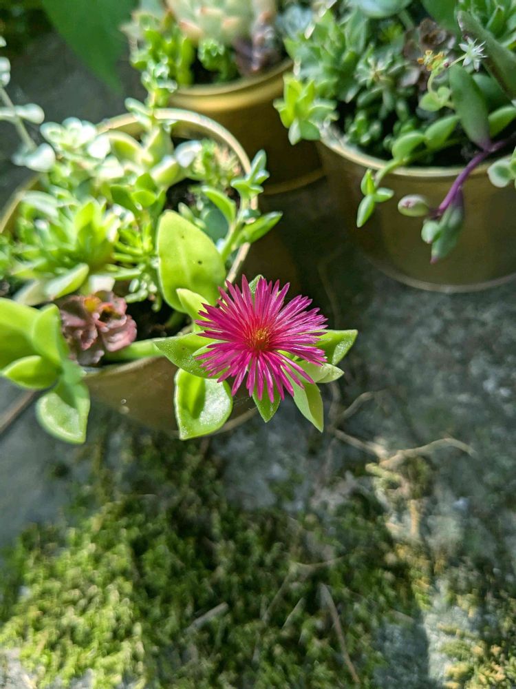 金の多肉缶ベビーサンローズが開花!