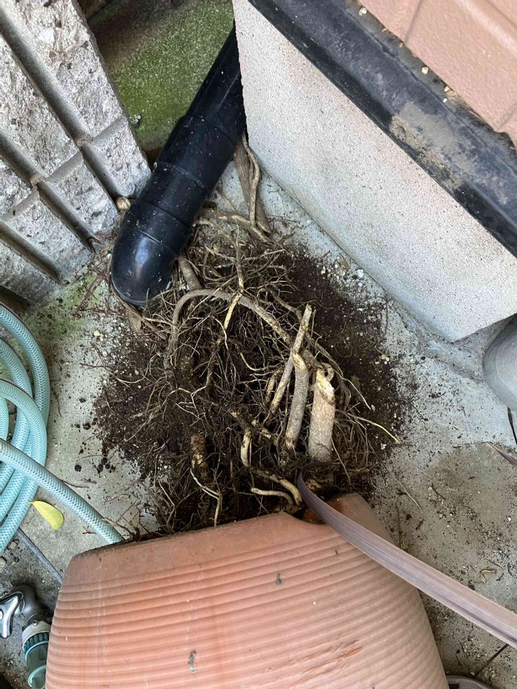 とりあえず切断して、鉢底からでてる根っこを整理しました。