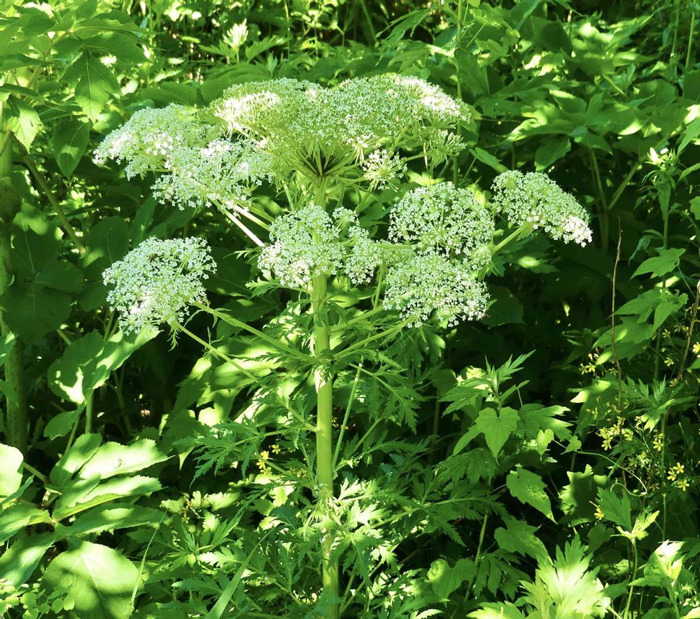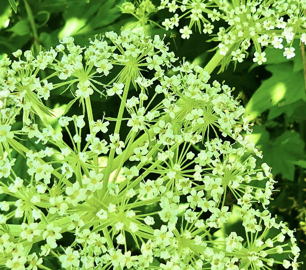 セリ科の大形植物、オオカサモチですね。(ミヤマ)シシウドなどより小花序は小さく、総苞片も小総苞片も線形で沢山ぶら下がっています。葉は1-3回3出羽状複葉で小葉は更に細かく裂けます🌿