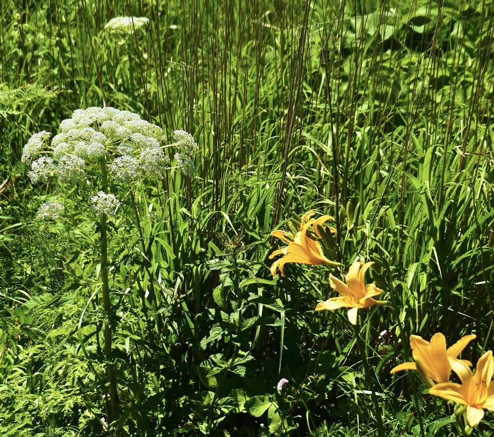 (ミヤマ)シシウドも沢山あるんですが、大きな葉を付けた株があるだけで花茎はまだ立ち上がっていませんでした。