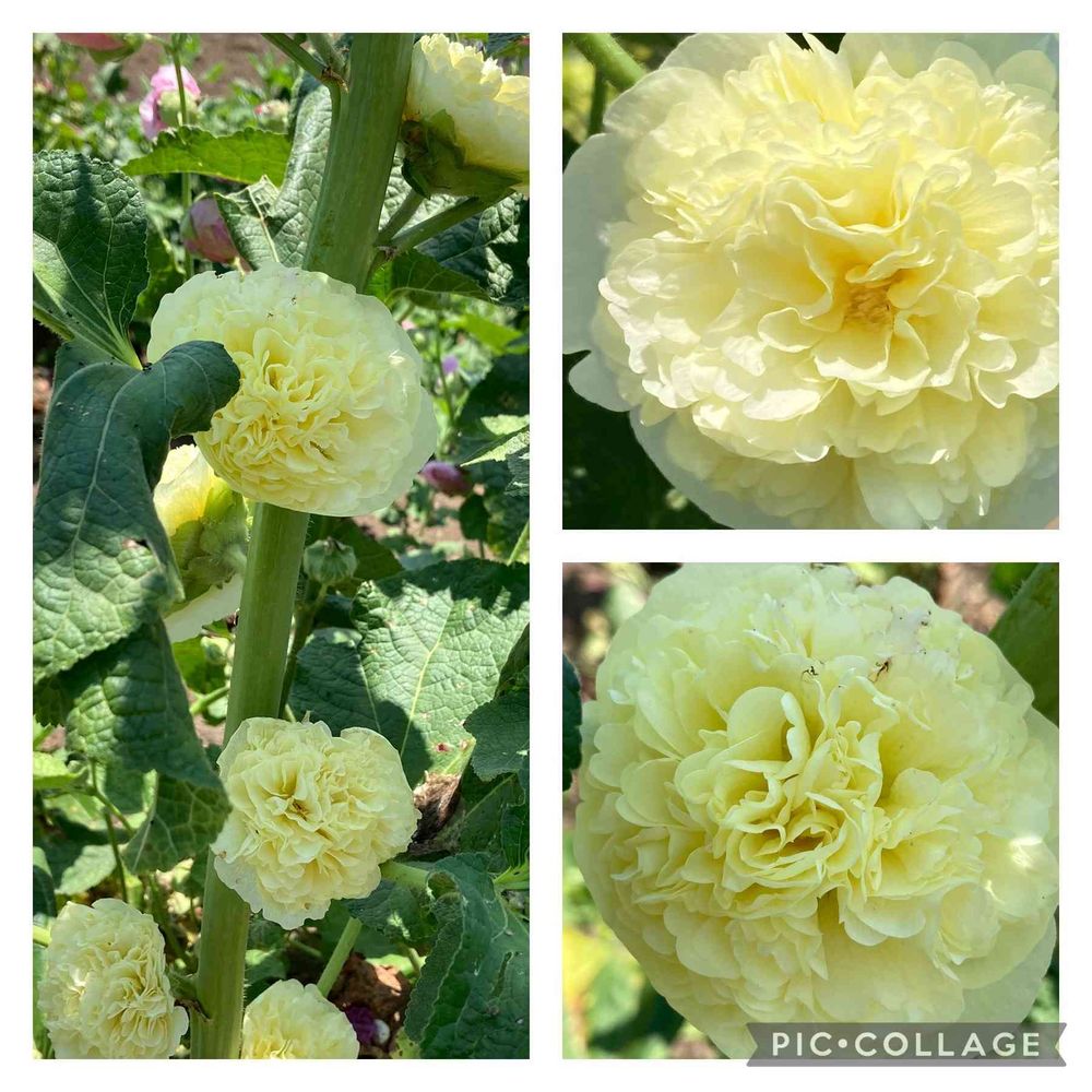 八重のタチアオイいい感じですねー!すっと立ち上がってて元気な感じがして、見てると元気貰えますよね。梅雨明け頃には枯れるけれどまだ元気で伸びて欲しいですねー!