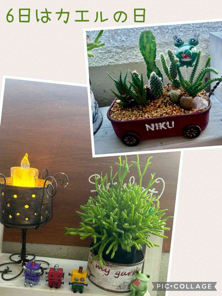 キャンピングキャリーに小ちゃなサボ、12の巻、バニー、若緑その他を🐸カエルちゃんを添えてみました(笑)