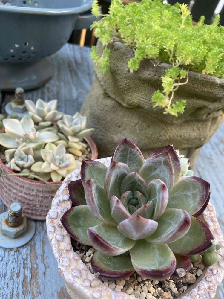 ミニバラを植えてた鉢、セダムが占領してしまいました🌱🌱🌱