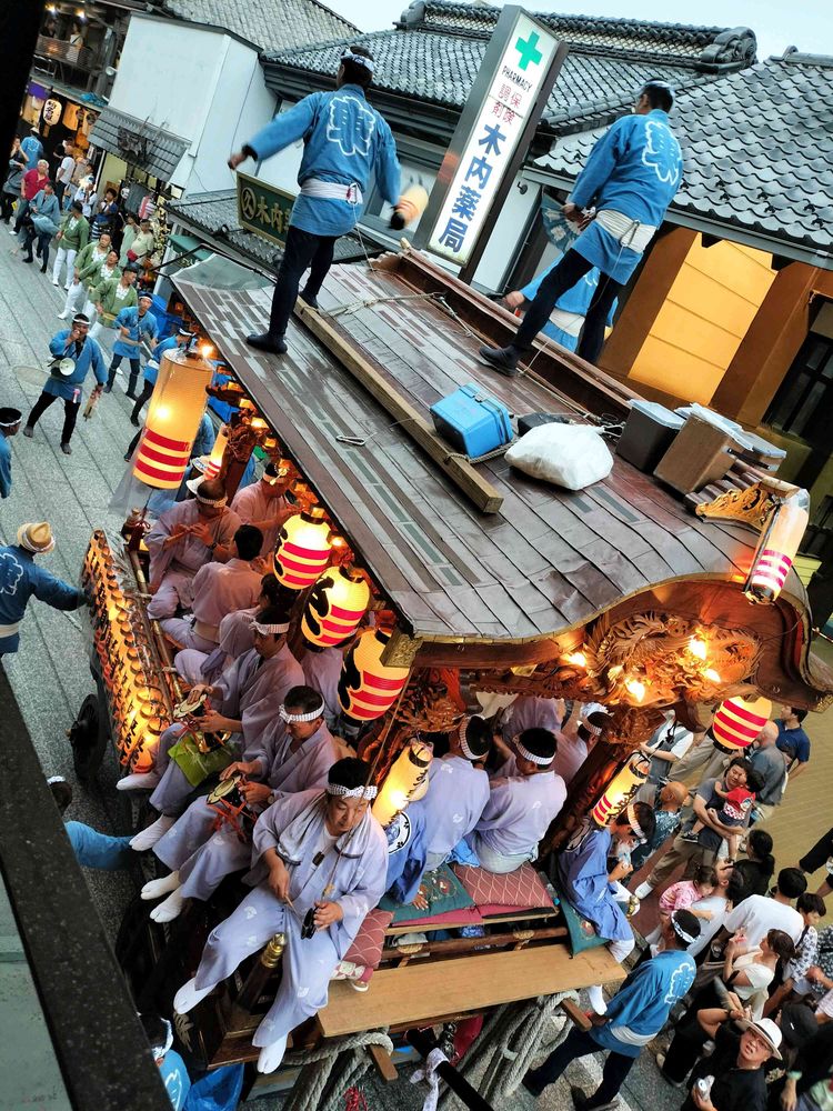 5枚目〜鰻の川豊2階席からの景色は山車の迫力が伝わるかな〜💪 ご贔屓さん達はおひねり竿にお札を挟んで山車の上にいる人へ🎁 お金を受け取ったら記念品を竿の先に挟んでお返しを貰えます 記念のタオルや巾着、マグネット等がありました 粋なご主人衆が竿に💴挟んでお祭りを楽しまれていました