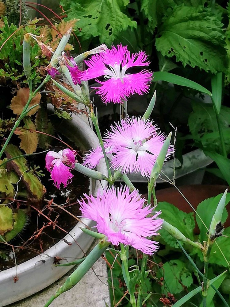 ①②我が家のカワラナデシコは神田川で採取した物🌸写真はその種から育てた物🌸