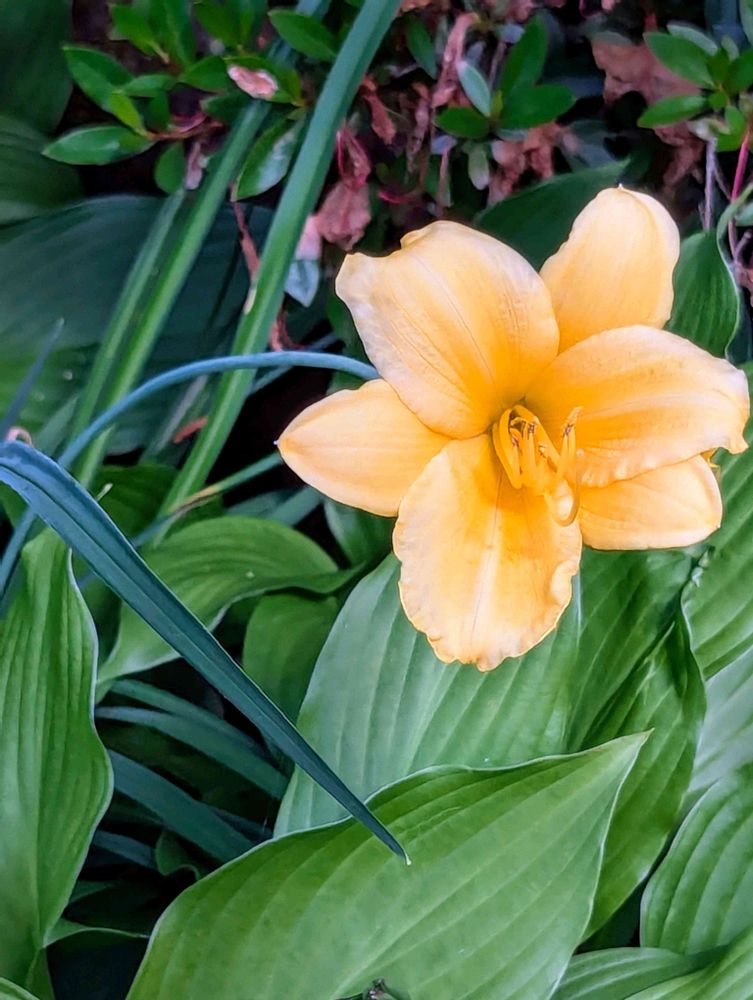 2枚目はギボウシの葉の間から咲いていたヘメロカリスです💛