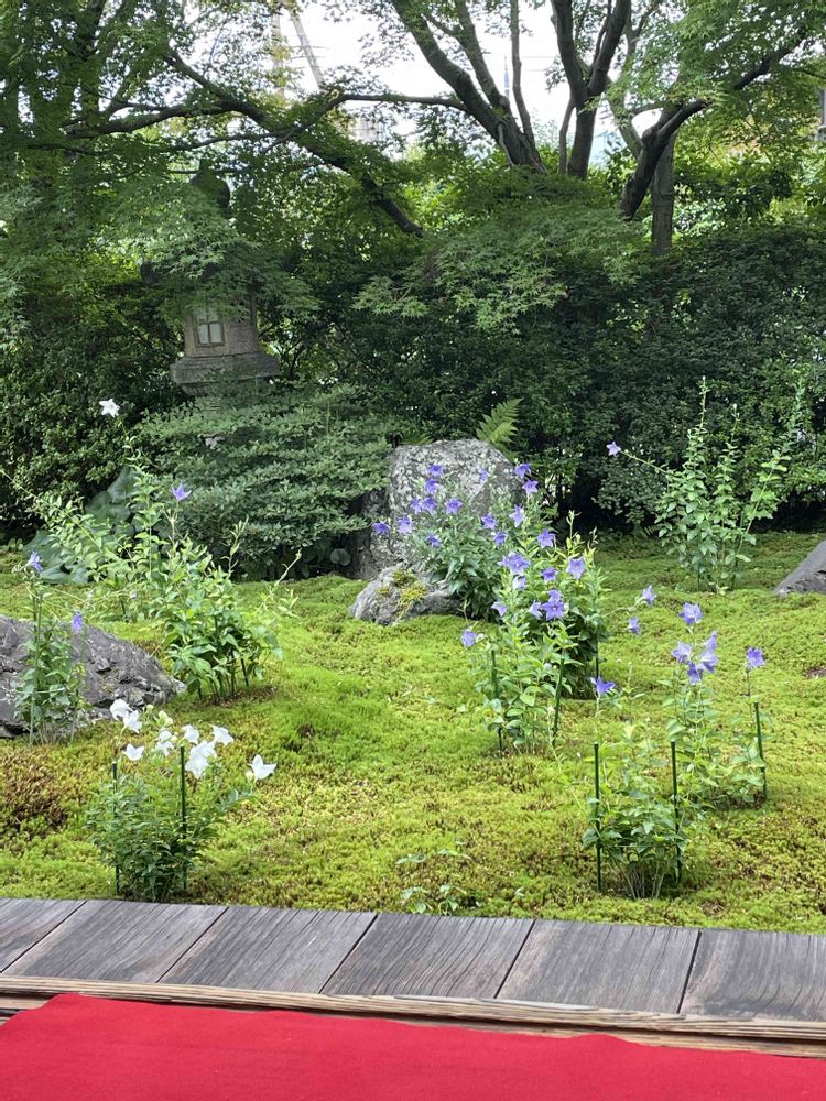スギゴケ 桔梗の咲く美しい枯山水の庭園観てもらって 少しでも 涼しげで爽やか気分になってくださいね〜💜🤍