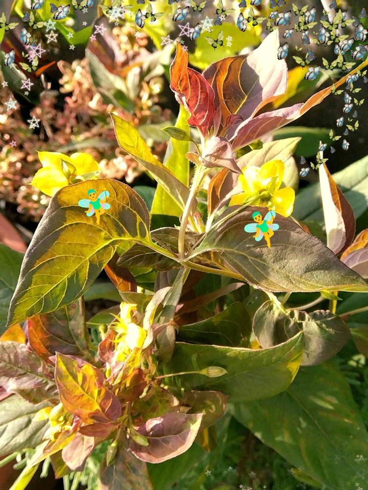 昨年 🟡咲かなかったので 庭植えと 鉢植え組で見守ったら 庭植え組🟡開花しました〰🌿葉は 赤紫色でバリエーション〰💃🏻💕楽しめますね〜🙆✨