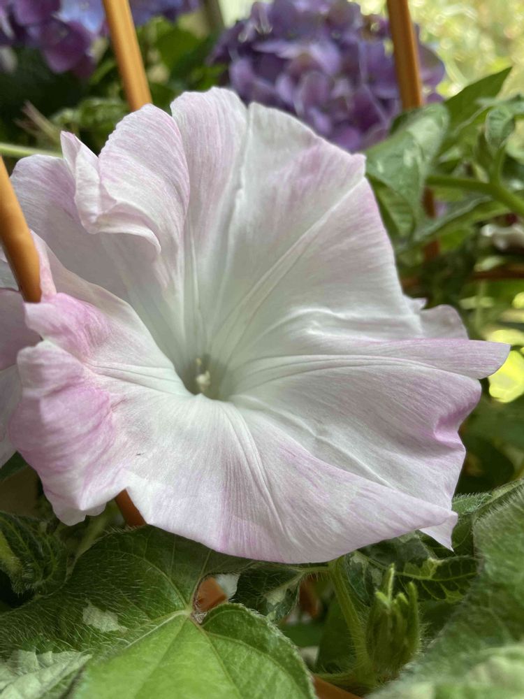 西洋朝顔は一日中咲いてくれますが、日本朝顔は太陽☀️に照らされて午後には萎んでしまいます。