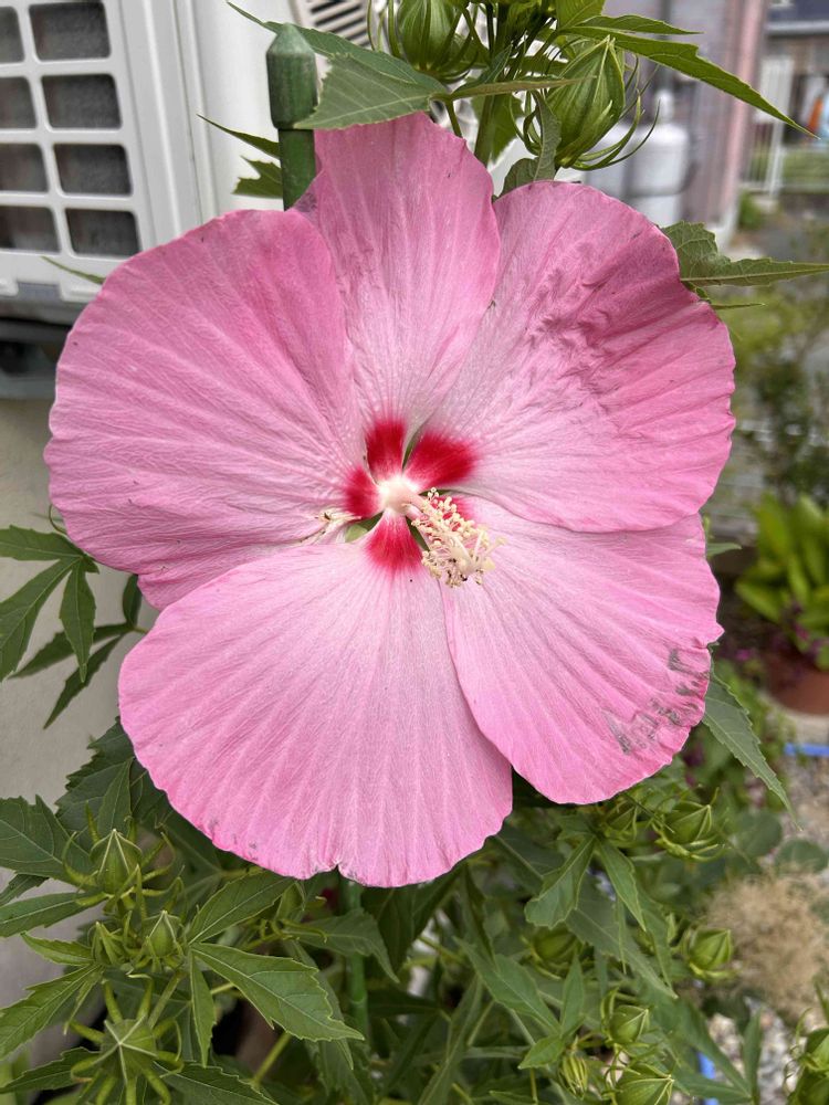 ② 去年買ったタイタンビカス。花の大きさが20cmくらいあります。こちらもどんどん咲き始めてます。