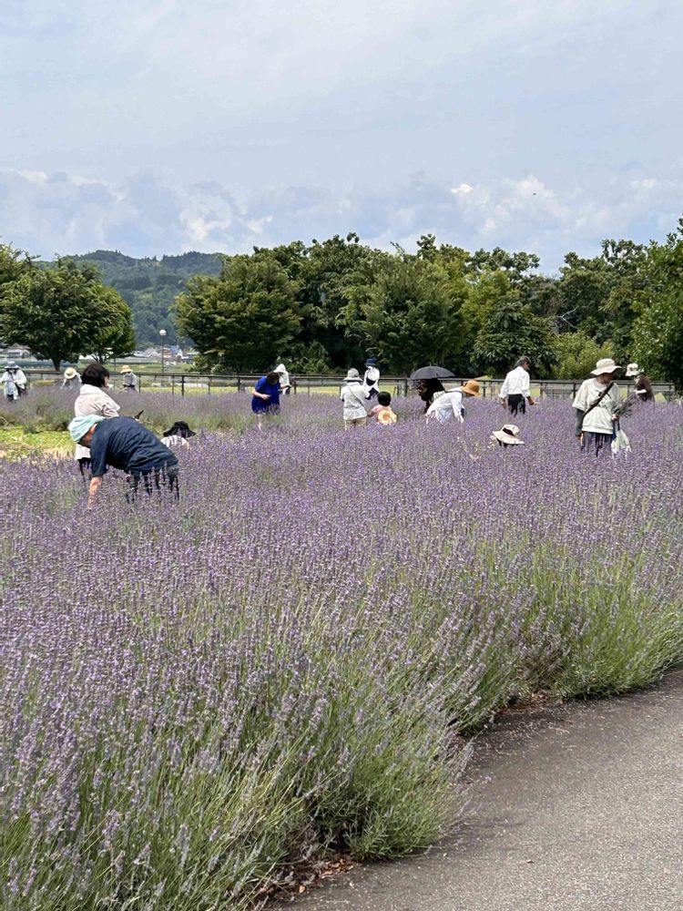 ④ 去年も開催したラベンダーの摘み取りイベント。去年より多くの方が来園してくれました。受け付けでじっとしてるのは🥵🥵🥵