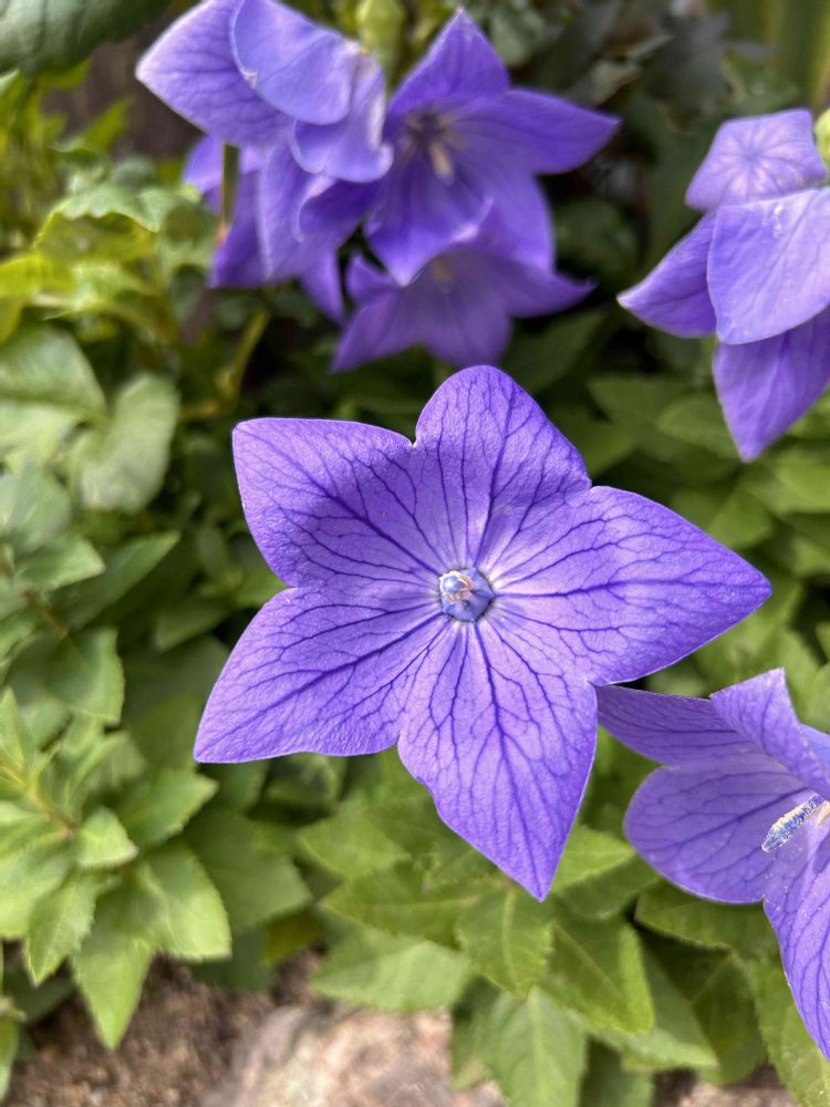 ⑤ 冬越ししたキキョウです。去年は5つくらいしか咲かなかった花が、今年は3倍以上咲いてます😊