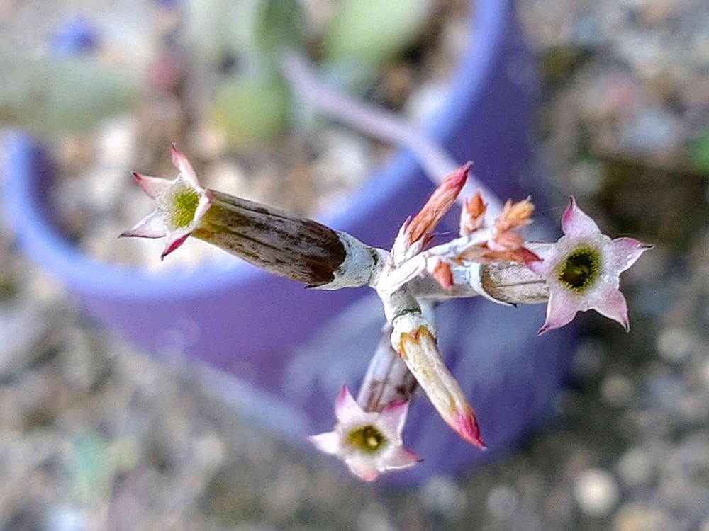 アドロミスクス、葉っぱも変わってるけど花もちょっと個性派さん( 艸`*)ププッ
