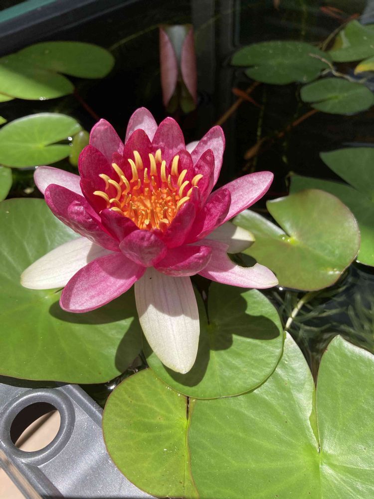 睡蓮の葉の間をメダカ達がスイスイと泳いでいます