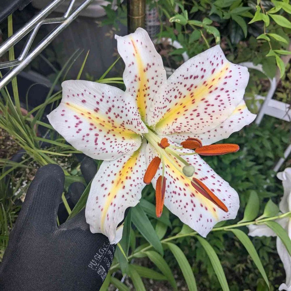 那須錦という赤斑点花のヤマユリを交配に使っており、ヤマユリ特有の黄筋がなく、スッキリとしたイメージの花ですね😆😆