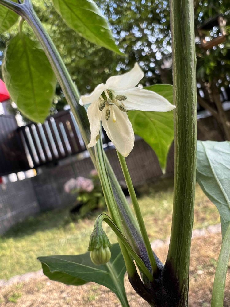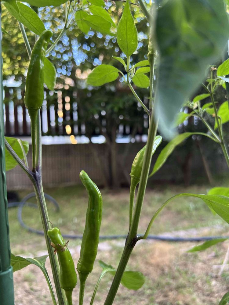 5月9日に植え付けをお手伝いに行き、その時にわけていただいた香川本鷹唐辛子の苗から、唐辛子ができてました😁本日2本初収穫して、