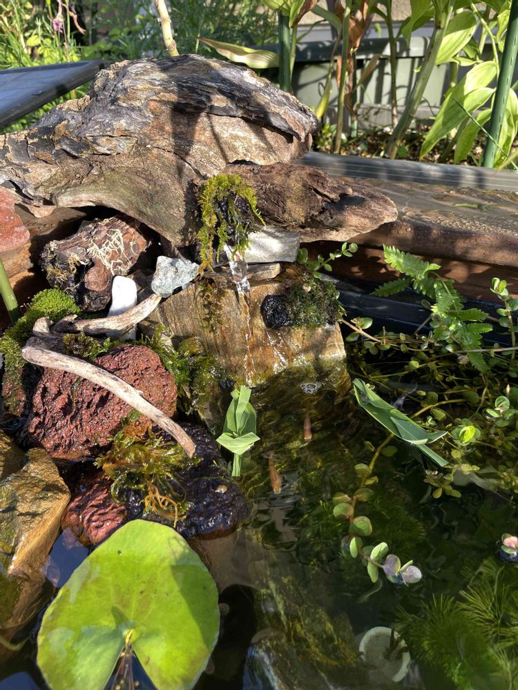 滝を作ったビオトープに笹舟を浮かべて見ました💦