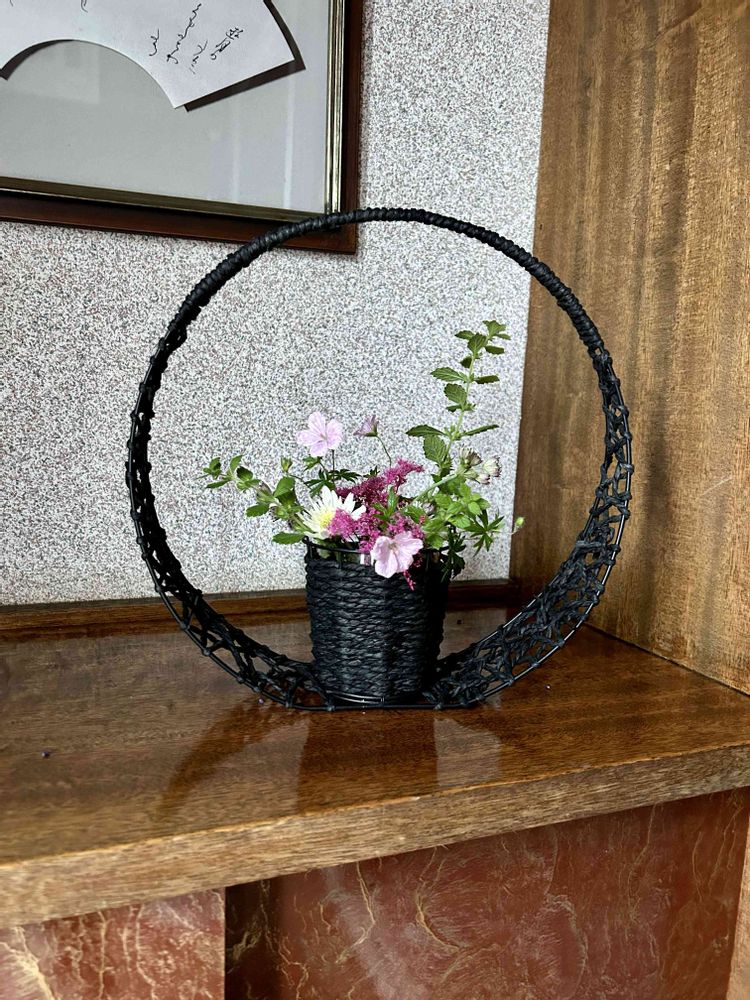オシャレ籠に実家の庭の生花、なんか落ち着く感があっていいですね。