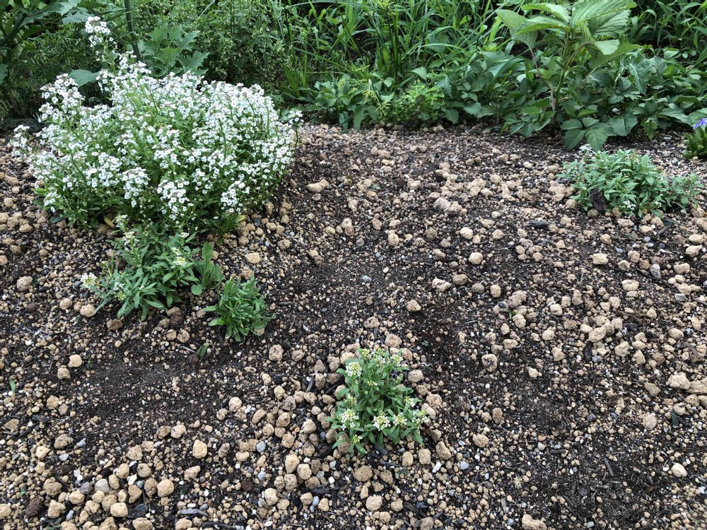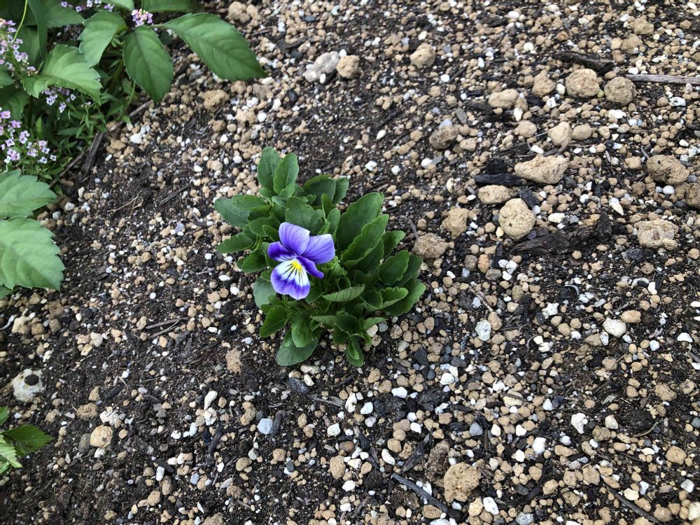 庭活しててビックリしたのが、こぼれ種でビオラが咲いてました😳 アリッサムは色んな場所で咲いてますけど、この猛暑の中咲くなんて強いビオラです。夏越し出来るかな?