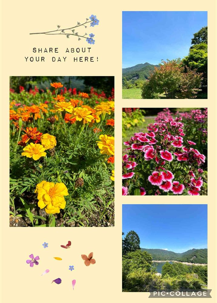建物は草木ダム湖のほとりに建っており、花壇には綺麗な花壇も🌸🌼