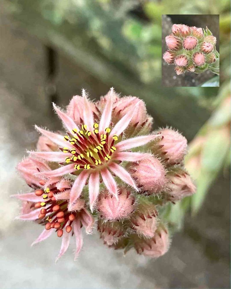 センペルビウムの花,もっと地味かと思ってましたが,花をUPで見ると可愛い💕花でした😅