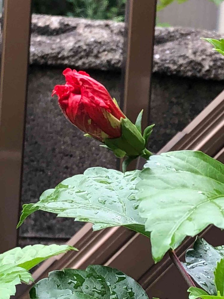 明日咲くはずの4つ目のハイビスカス🌺です…軒に避難してきましたが、無事に明日咲くでしょうか😥