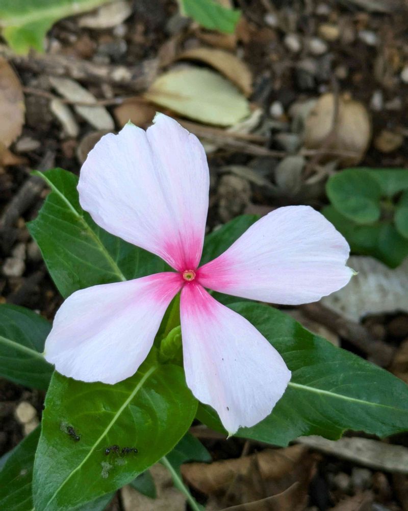 ニチニチソウ、かわいそうな日陰、これじゃ育たないよ。