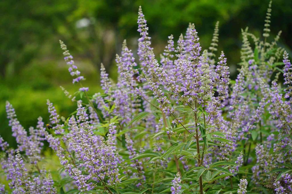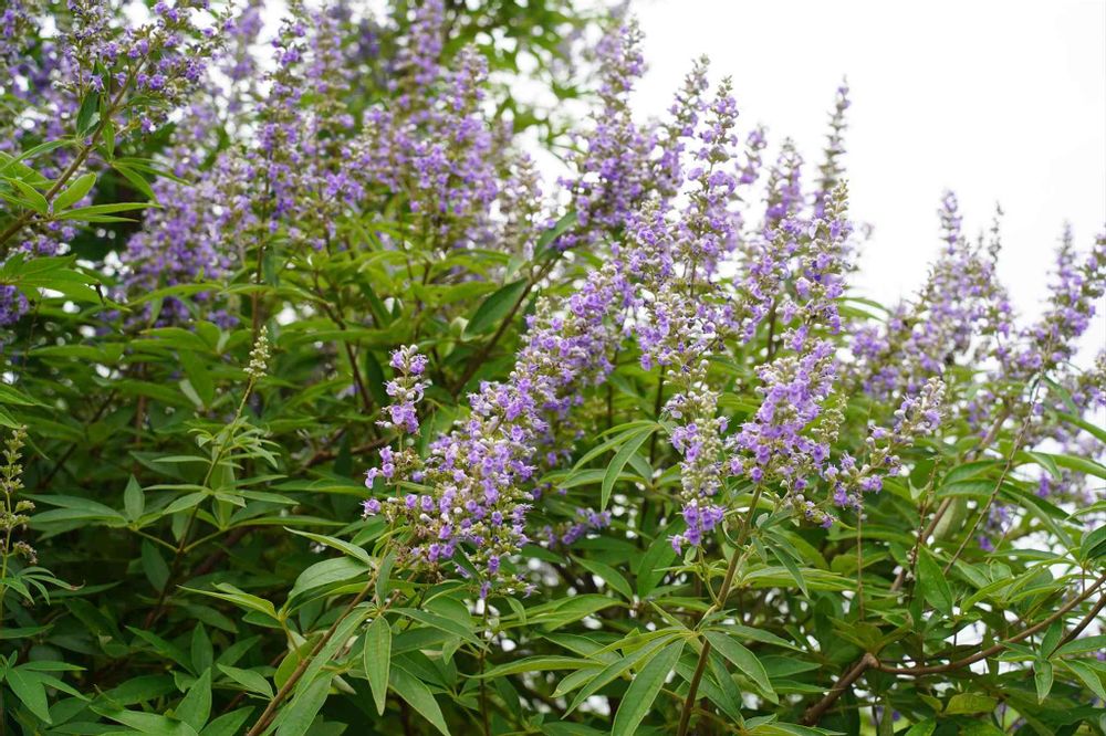 セイヨウニンジンボクが爽やかな藤色の花を咲かせ始めました。この暑い時期に嬉しい花です。