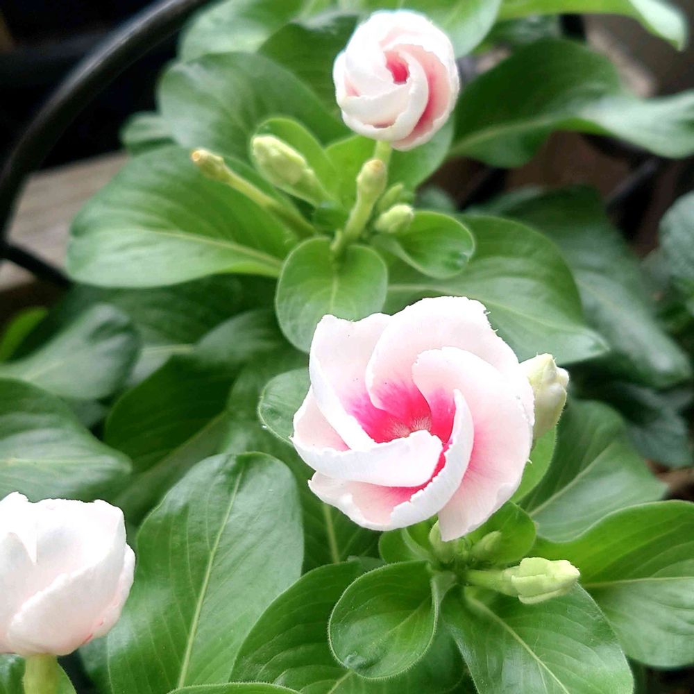 開くと普通のニチニチソウ(ビンカ)ですが、蕾から咲きかけがかわいらしくて💗