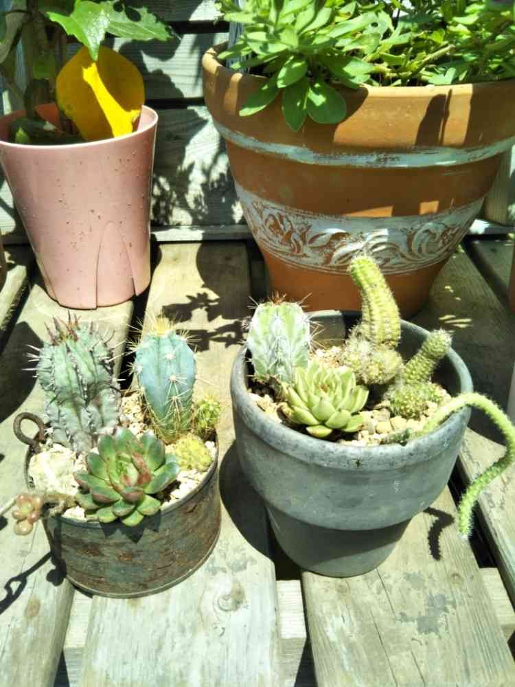 灼熱の頃作り直したサボと多肉の寄せ植え🌵🌞