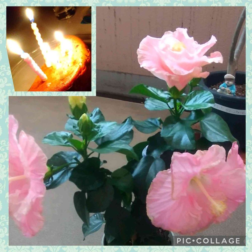 友人から手作りバースデー🎂ケーキと大きなハイビスカス🌺を頂きました💗感激😍
