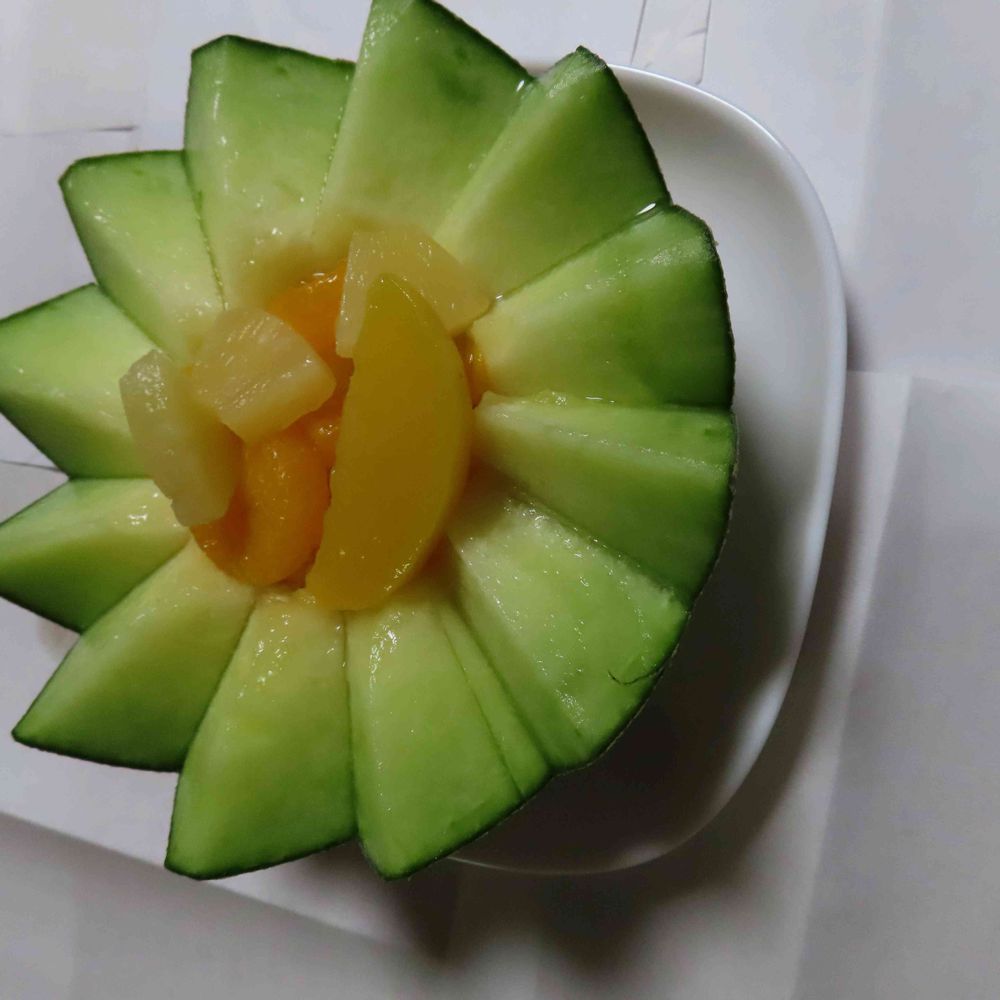 完熟になったメロン食べる前に、飾り包丁入れてみました。