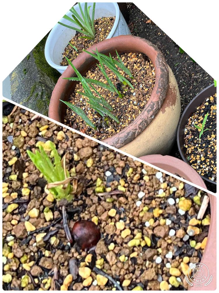 ④チュベローズ、やっと芽が出て来ました♪先に出た子達とはかなり差があります😅