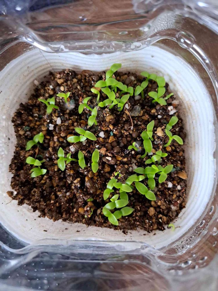 ミニドラゴンフルーツを買った時にくっついてた実から種を取って植えたもの・・・。 芽が出てると。ココまではドラゴンフルーツも早いんだけど、本葉が中々出て来ないんだよね・・・・。芽が出て双葉になるとこまでは速いんだけど・・・・。