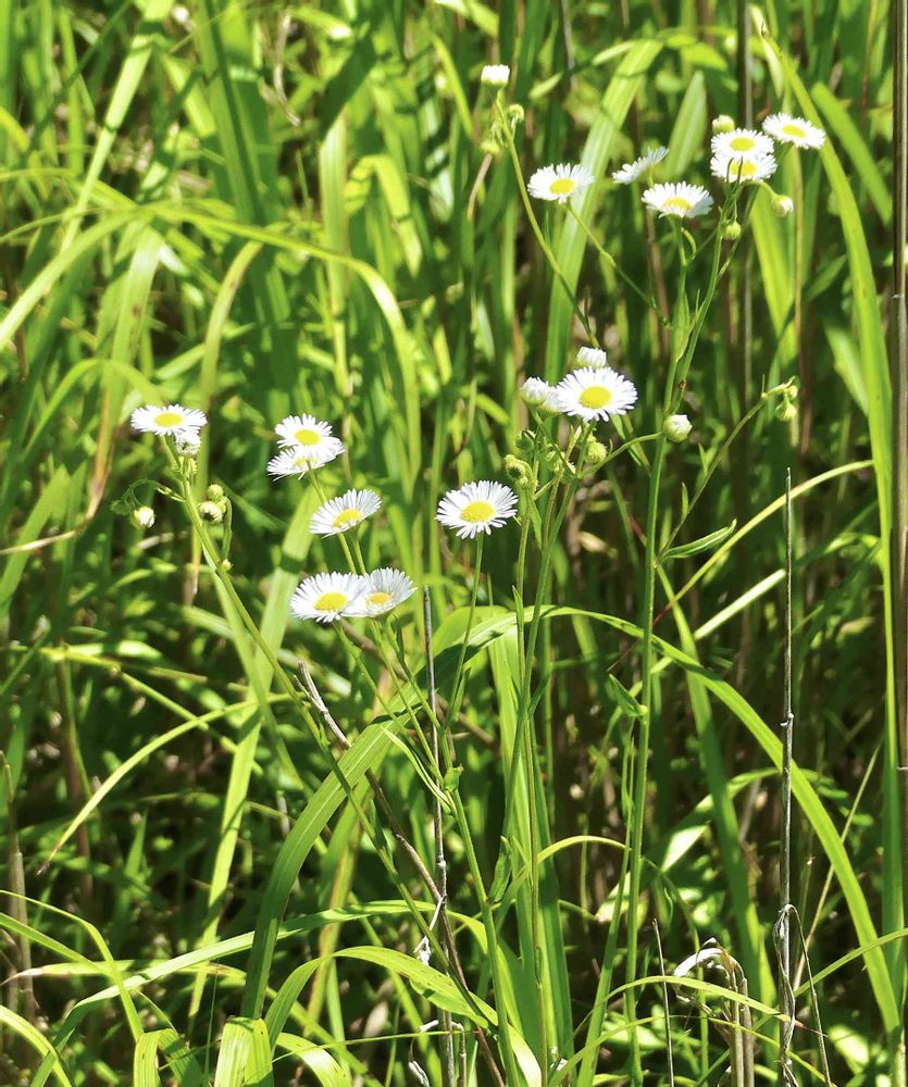 草原の中に点々と咲いているヒメジョオンは、これヘラバヒメジョオンですね。