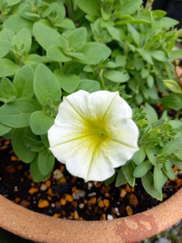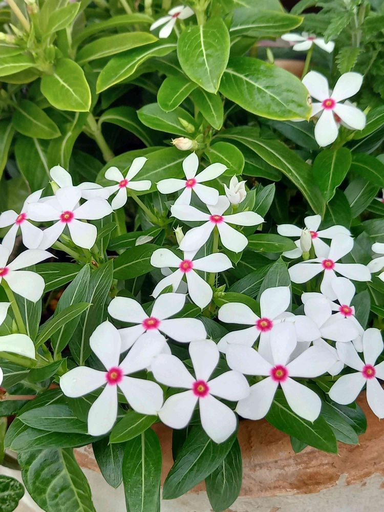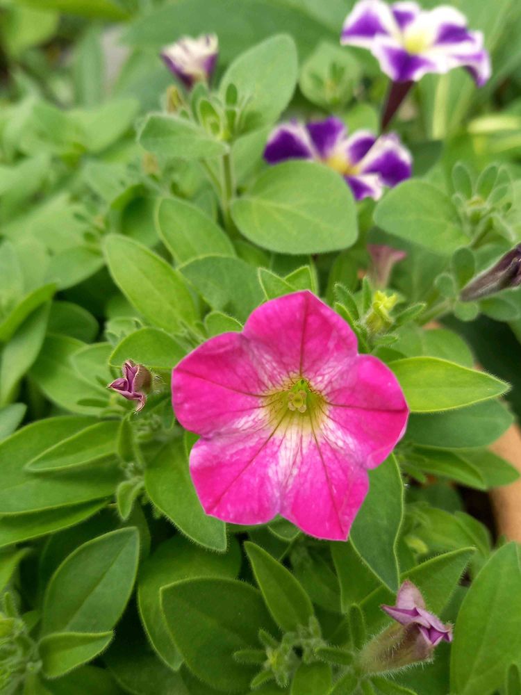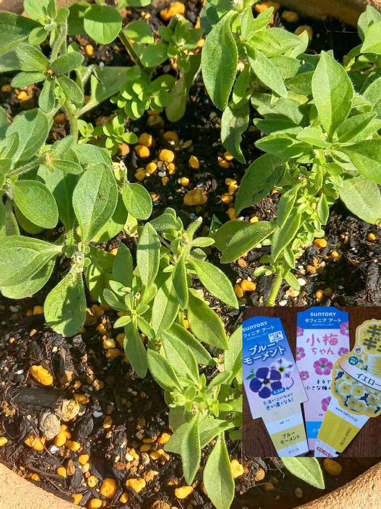 ②見切り品3種類、大鉢に植えました。6月の末です🤭