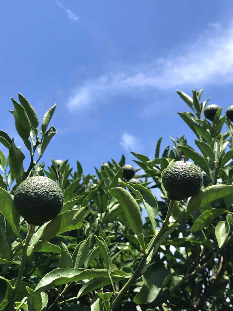 ⑤うちにもあるけど、これは散歩道の不知火(デコポン)🍊 ピンポン玉位に育ってきました🟢🟢🟢
