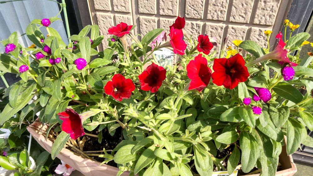 寄せ植付けもあるもので千日紅は昨年度の種子から~です。😃