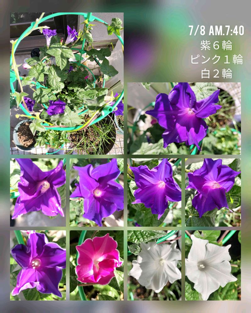 桔梗咲き朝顔の開花数では最高です😄💜💜💜💜💜🤍💜